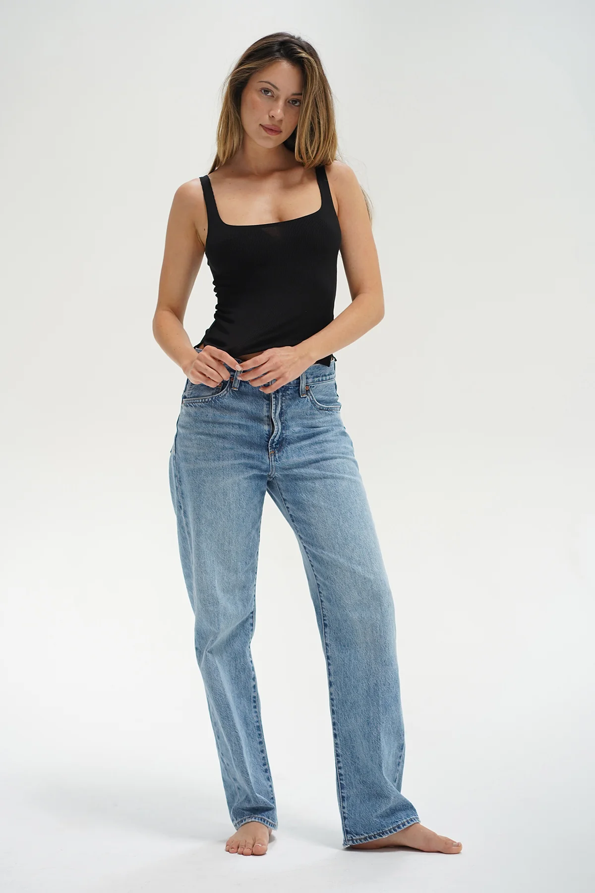 The LNA Essential Ribbed Scoop Tank is perfect for tossing on with jeans or layering. This tank fits close to the body and is made in our 2x1 rib fabric. The neckline is cut in a slightly squared scoop with a lower cut back.