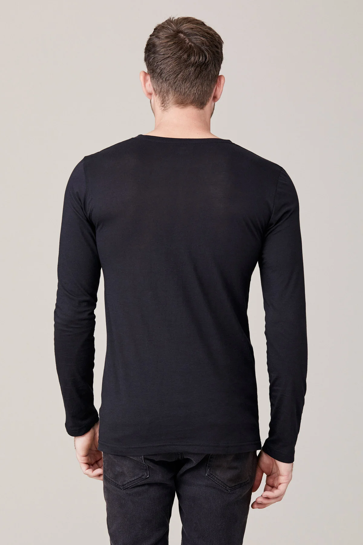 -70%Men's Long Sleeve Button Henley - Blackā