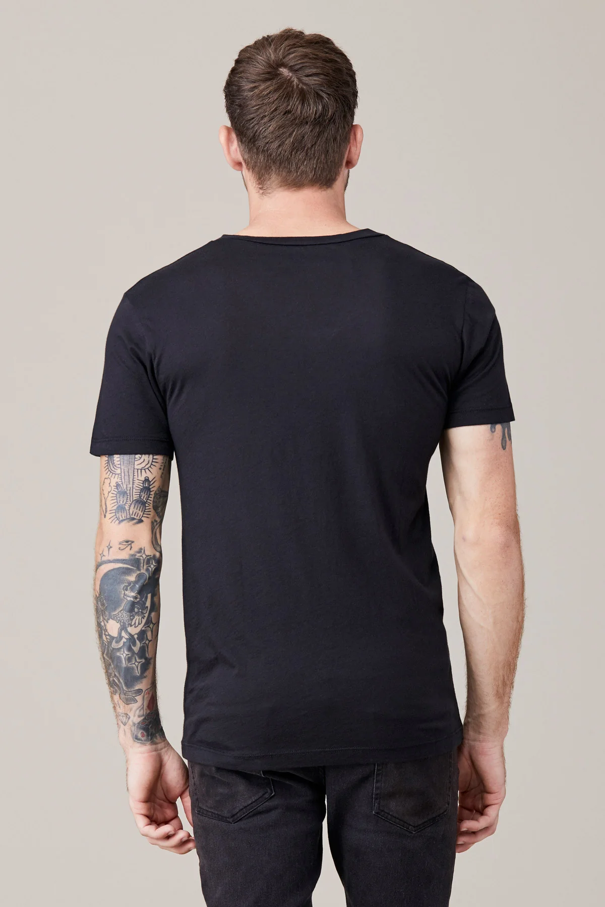 Men's Short Sleeve V Neck - Black